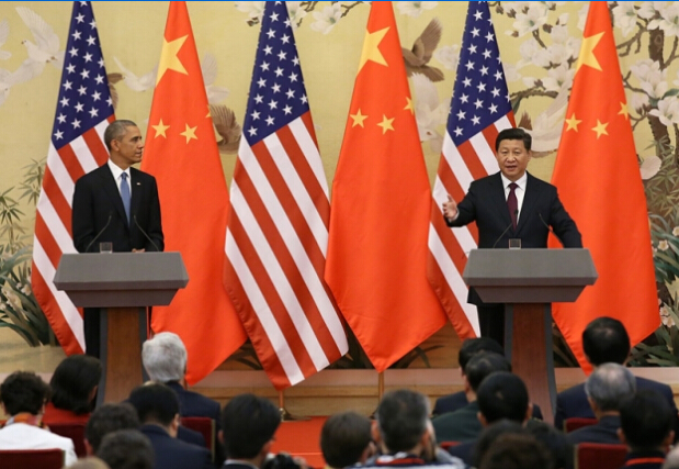 圖為11月12日,國家主席習(xí)近平在北京人民大會堂與來訪的美國總統(tǒng)奧巴馬舉行會談后,共同會見記者。