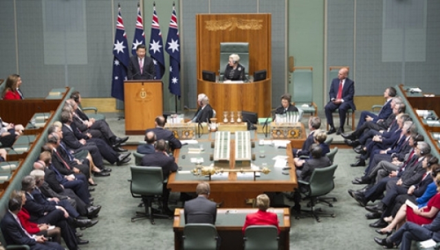 11月17日,國家主席習近平在澳大利亞聯(lián)邦議會發(fā)表題為《攜手追尋中澳發(fā)展夢想 并肩實現(xiàn)地區(qū)繁榮穩(wěn)定》的重要演講。新華社記者謝環(huán)馳攝