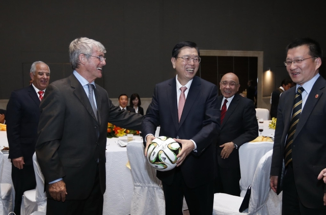 ????張德江稱贊米盧“你為中國(guó)足球做出了貢獻(xiàn)”。