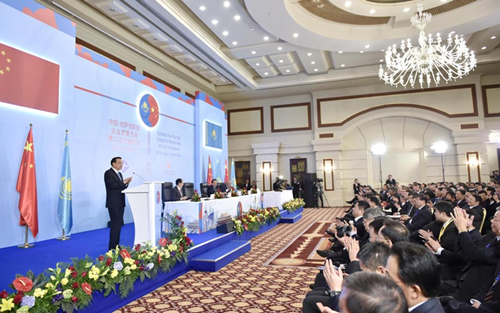????國務(wù)院總理李克強(qiáng)當(dāng)?shù)貢r(shí)間14日下午在阿斯塔納與哈薩克斯坦總理馬西莫夫共同出席中哈企業(yè)家委員會(huì)第二次會(huì)議閉幕式并致辭。
