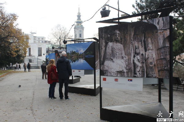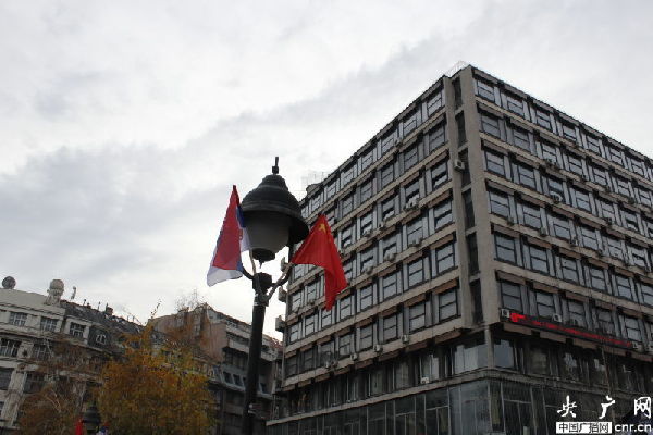 ??? 盡管人們穿著厚厚的外衣,但貝爾格萊德卻并不寒冷,更像是秋天剛剛來到。這兩天,無論是新城區(qū)還是傳統(tǒng)的舊城都紛紛出現(xiàn)了中國的色彩。舊城米哈伊洛大公街附近,幾條馬路都掛起了中塞兩國的國旗。卡萊梅格丹城堡還正在進(jìn)行「世界遺產(chǎn)在中國」圖片展。最神奇的是,記者偶遇的一位老奶奶,得知記者come from China后,立刻用中文唱起了“我愛你中國”,瞬間親切了很多。