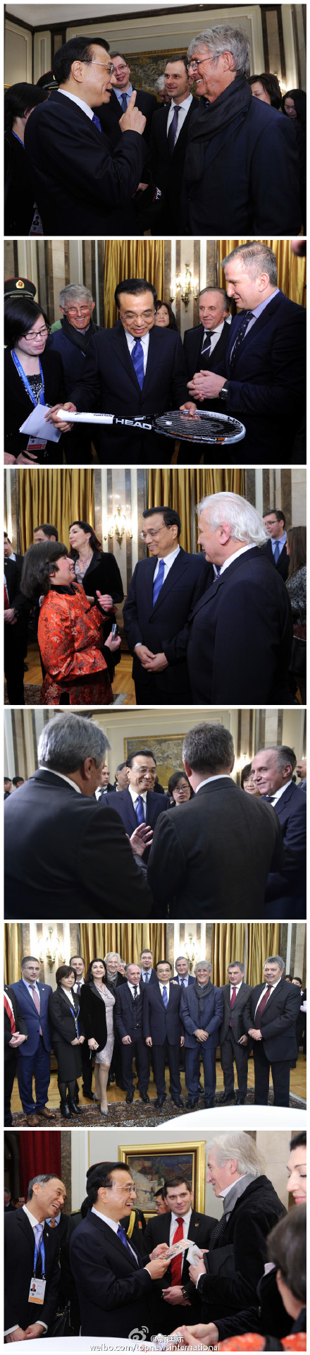 ??? 當(dāng)?shù)貢r(shí)間18日下午,李克強(qiáng)總理在塞爾維亞接受“貝爾格萊德榮譽(yù)市民”證書(shū)后,同在場(chǎng)的塞各界知名人士交流。他們既有為人熟知的電影演員、足球教練,也有歌劇表演藝術(shù)家和長(zhǎng)期研究中國(guó)的漢學(xué)家。總理同他們親切交談,現(xiàn)場(chǎng)氣氛友好熱烈。