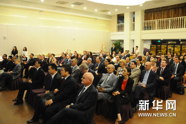 ??? 7月16日,第十屆歐洲外交官研討班開班儀式暨《中國(guó)歐盟建交40周年》紀(jì)念畫冊(cè)發(fā)行儀式在京舉行,共有31位來自歐洲各國(guó)及歐盟機(jī)構(gòu)的駐華使節(jié)出席研討班開班儀式。 新華網(wǎng)記者 張藝 攝