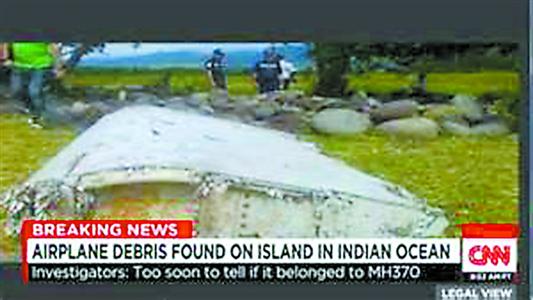 ????本報訊 據(jù)美國有線電視新聞網(wǎng)(CNN)報道,當(dāng)?shù)貢r間29日上午,在印度洋法屬留尼汪島海域發(fā)現(xiàn)了神秘飛機(jī)殘骸,疑似去年失事的馬航MH370客機(jī)部件。與此同時,據(jù)稱附近海域還漂有多個殘骸碎片。另據(jù)法新社消息,法國航空官員已開始著手調(diào)查,據(jù)稱,殘骸大約有2米長,似乎是飛機(jī)機(jī)翼的一部分,與波音777客機(jī)零件十分相似。而MH370航班正是波音777機(jī)型。截至發(fā)稿時,調(diào)查結(jié)果仍未公布。