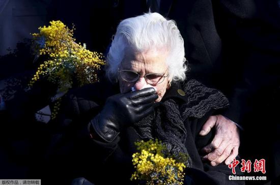 圖為一名遇難者的家屬在揭幕儀式現(xiàn)場(chǎng),為逝去的親人獻(xiàn)花。