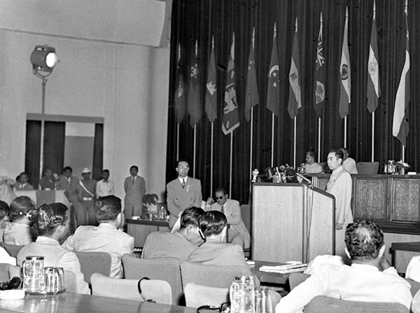 1955年4月18日至24日,在印度尼西亞萬隆舉行首屆亞非會議,即萬隆會議。中國代表團團長周恩來總理在大會上發(fā)言。(資料照片)