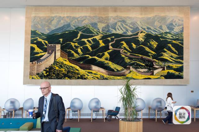 在恢復(fù)聯(lián)合國合法席位后不久的1974年,中國將一條長10米、寬5米的長城掛毯贈送給了聯(lián)合國。它由天津地毯公司所屬各廠的15名織毯高手以248種色紗織成,表現(xiàn)了北京居庸關(guān)長城的雄姿。40多年來,它一直高掛在聯(lián)合國代表休息北大廳里,不少來聯(lián)合國參觀的人在經(jīng)過時都忍不住駐足觀看。