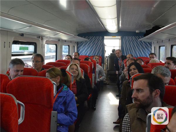 圖為馬其頓總理格魯埃夫斯基(左一)乘坐動(dòng)車。新華社發(fā)