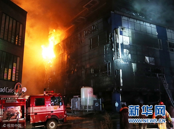 當?shù)貢r間2017年12月21日,韓國忠清北道堤川市一運動中心突發(fā)大火,已致29人死亡26人受傷。據(jù)韓聯(lián)社報道,大火在運動中心一層燃起后,通過樓道迅速蔓延至整棟樓。(圖片來源:視覺中國)