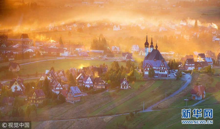1月10日訊(具體拍攝時(shí)間不詳),波蘭皮耶尼內(nèi)山脈的一個(gè)村莊被濃霧籠罩,攝影師站在對(duì)面山上拍攝的景觀如童話世界一般,色彩繽紛的房子在濃霧中若隱若現(xiàn)仿若仙境。(圖片來(lái)源:視覺(jué)中國(guó))