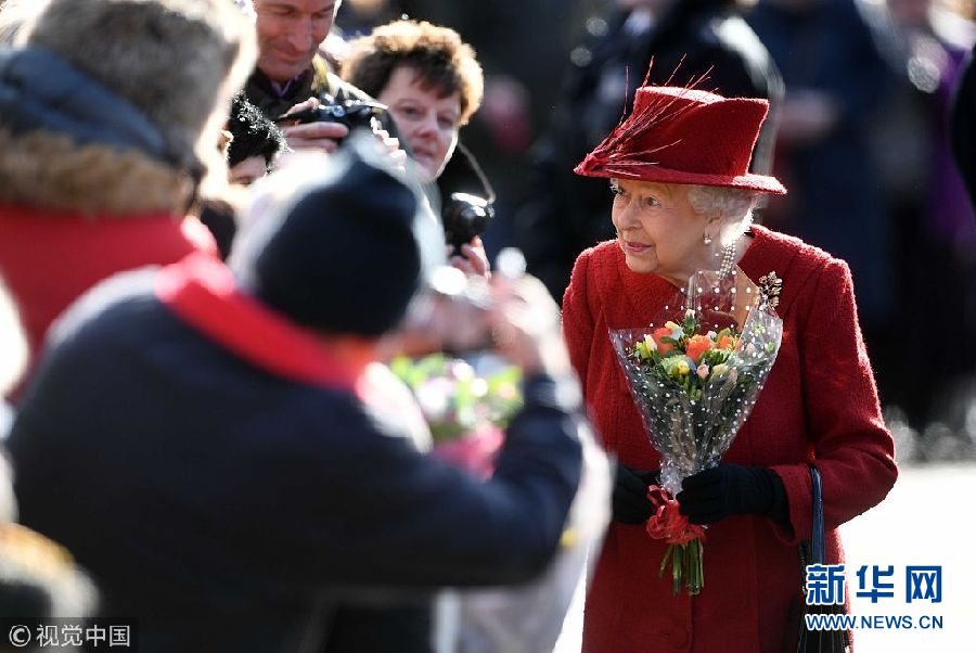 英國女王出席教堂晨禱儀式 收到鮮花喜上眉梢