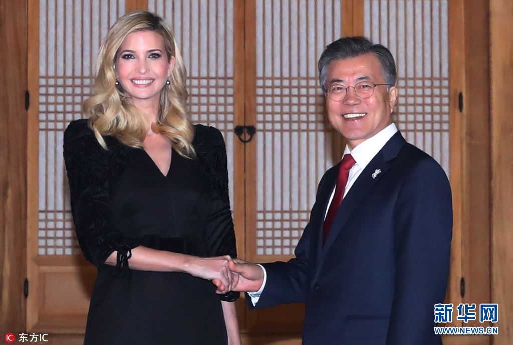 當地時間2018年2月23日,韓國首爾,韓國總統(tǒng)文在寅夫婦在青瓦臺設晚宴,歡迎伊萬卡來訪。美國總統(tǒng)特朗普之女、總統(tǒng)助理伊萬卡率領的美國代表團23日抵韓進行訪問,并將出席平昌冬奧會閉幕式。(圖片來源:東方IC)