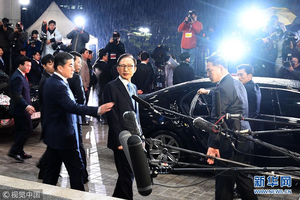 3月15日,韓國(guó)首爾,韓國(guó)前總統(tǒng)李明博在接受了檢方超過(guò)21小時(shí)的調(diào)查后返家。他涉嫌包括受賄、挪用公款等在內(nèi)的20多項(xiàng)罪名,同時(shí)也是韓國(guó)第五位被檢方調(diào)查的前總統(tǒng)。(圖片來(lái)源:視覺中國(guó))