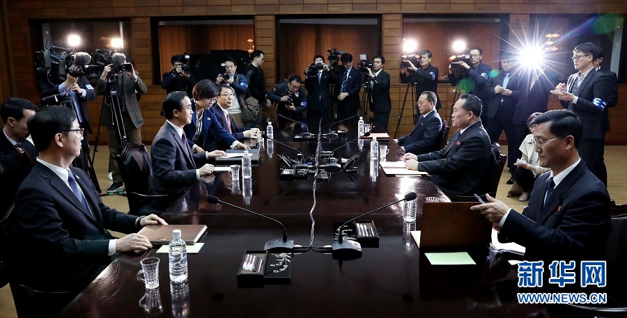 3月29日,在板門店朝方一側(cè)的統(tǒng)一閣,朝韓雙方代表參加高級(jí)別會(huì)談。