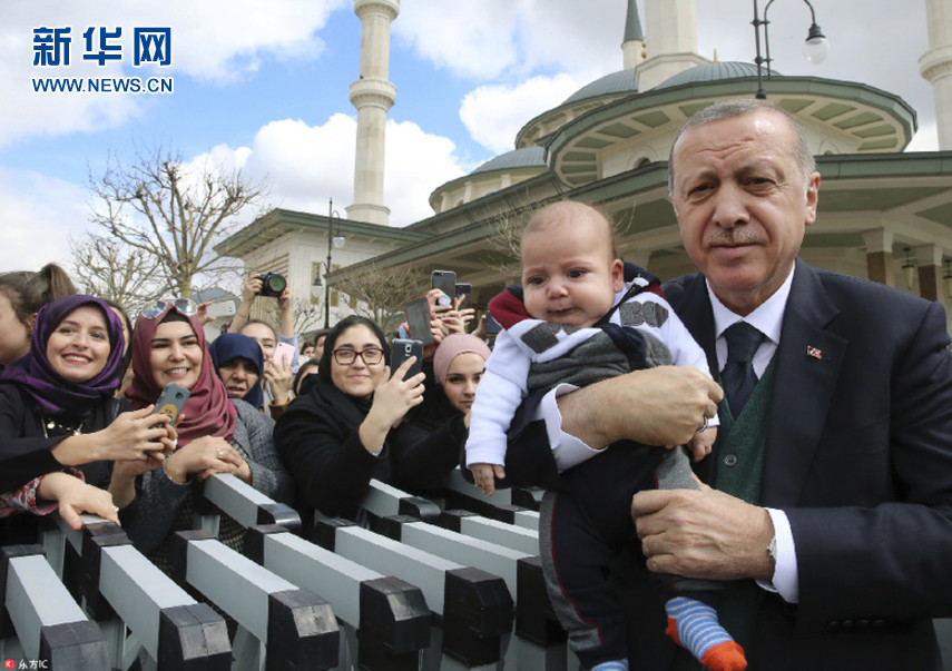 土總統(tǒng)埃爾多安會(huì)見(jiàn)支持者 抱小萌娃與民眾打招呼
