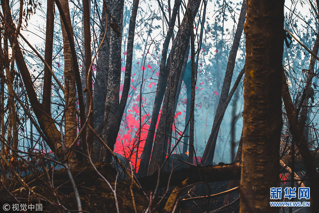 5月13日,美國(guó)夏威夷,基拉韋厄火山仍處于持續(xù)噴發(fā)的狀態(tài),火山周圍又出現(xiàn)了新的噴發(fā)裂縫。(圖片來(lái)源:視覺(jué)中國(guó))
