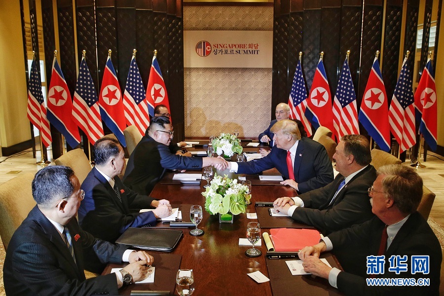 長(zhǎng)期敵對(duì)的朝美兩國(guó)當(dāng)天舉行首次領(lǐng)導(dǎo)人會(huì)晤,就朝鮮半島無(wú)核化及和平機(jī)制構(gòu)建等事務(wù)展開(kāi)磋商。