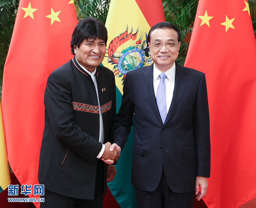 李克強(qiáng)指出,中方愿同玻方抓住兩國(guó)關(guān)系發(fā)展的新機(jī)遇,推動(dòng)經(jīng)貿(mào)、旅游、人文合作,增加進(jìn)口玻方有競(jìng)爭(zhēng)力、高質(zhì)量的產(chǎn)品。加強(qiáng)產(chǎn)能合作,深化資源開(kāi)發(fā)利用,推動(dòng)玻工業(yè)化進(jìn)程。中玻合作是南南合作的組成部分,中方愿同包括玻方在內(nèi)的拉美國(guó)家一道,維護(hù)發(fā)展中國(guó)家共同利益,促進(jìn)世界和平、穩(wěn)定與發(fā)展。