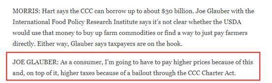 比如,一位美國愛荷華州立大學(xué)的學(xué)者就表示,單純增加農(nóng)業(yè)補(bǔ)貼根本無法在貿(mào)易戰(zhàn)這樣的沖突中保護(hù)農(nóng)民的權(quán)益。而另一位美國食品領(lǐng)域的學(xué)者則表示,即便特朗普政府會出面直接收購農(nóng)民的產(chǎn)品,這些收購的錢款還不是得從消費者——即納稅人——的口袋里出?