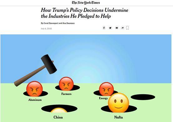 多位接受《紐約時報》采訪的經(jīng)貿(mào)學(xué)者還“一針見血”地指出了特朗普對中國等國家發(fā)動貿(mào)易戰(zhàn)的一個最本質(zhì)問題:他看似是想幫助美國的企業(yè),可他與他團(tuán)隊那些混亂與缺乏清晰性的政策,卻令他的”幫助”呈現(xiàn)出一種“按下葫蘆浮起瓢”的尷尬場景,結(jié)果就是很多企業(yè)乃至整個都不知道該怎么去面對這些變化了。
