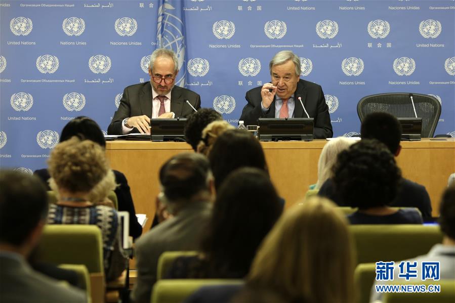 7月12日,在位于紐約的聯合國總部,聯合國秘書長古特雷斯(右)出席記者招待會。聯合國秘書長古特雷斯12日舉行記者招待會,強調多邊主義和基于規(guī)則的國際關系對于應對全球挑戰(zhàn)的重要性。新華社記者 李木子 攝