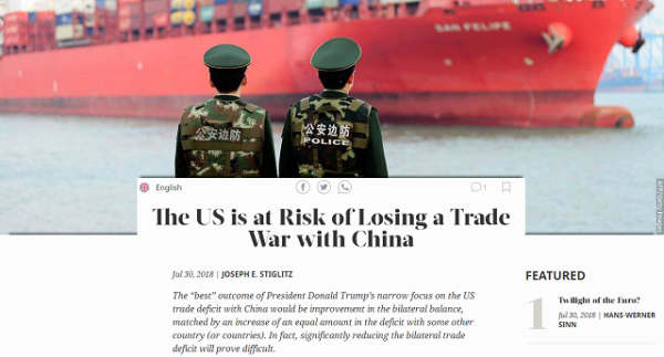 諾貝爾經濟學獎得主約瑟夫·斯蒂格利茨:美國面臨輸?shù)糍Q易戰(zhàn)的危險