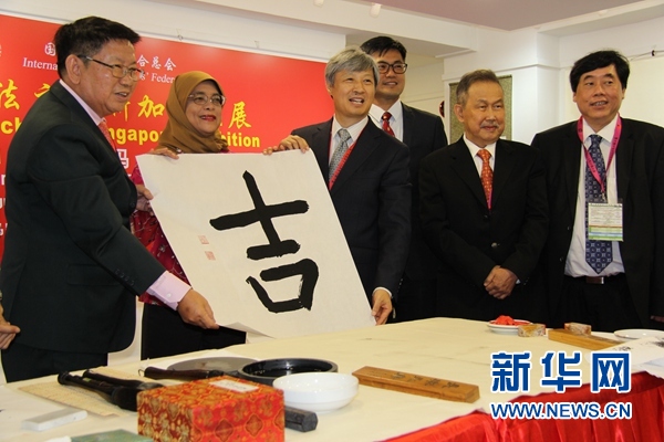 新華社新加坡9月1日電(記者王麗麗 夏立新)第13屆國際書法交流大展9月1日在新加坡書法中心開幕,新加坡總統(tǒng)哈莉瑪·雅各布出席了開幕式并當(dāng)眾揮毫。
