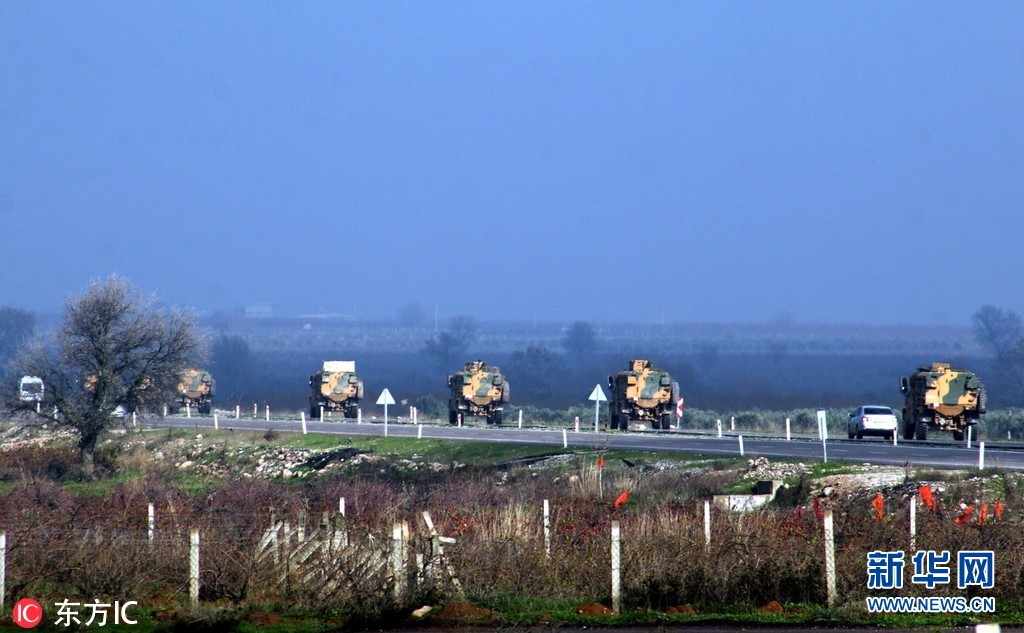 當(dāng)?shù)貢r(shí)間2018年12月24日,土耳其哈塔伊,土耳其裝甲車被派往敘利亞邊境的基利斯地區(qū),增援邊境部隊(duì)。(圖片來源:東方IC)