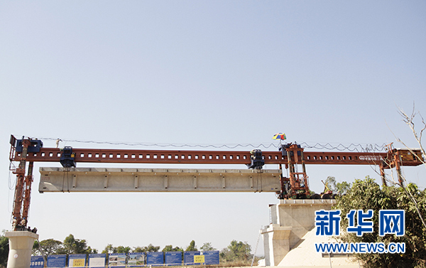這是2月9日在老撾首都萬象拍攝的楠科內(nèi)河特大橋架梁施工現(xiàn)場。新華社發(fā)(臧衡 攝)