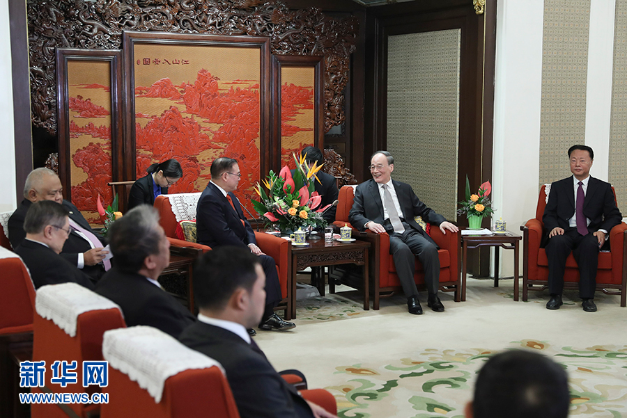 3月19日,國家副主席王岐山在北京中南海會見由外長洛欽、執(zhí)行部長梅迪亞爾德亞、財長多明格斯等組成的菲律賓政府代表團。 新華社記者 丁海濤 攝