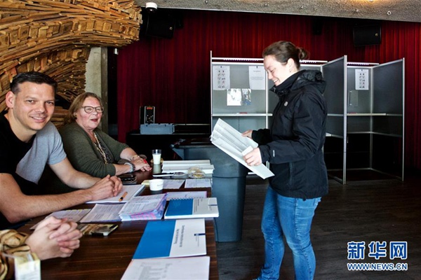 5月23日,在荷蘭哈勒姆,選民準(zhǔn)備投票。五年一次的歐洲議會(huì)選舉于5月23日至26日舉行。新華社發(fā)(西爾維亞·萊德爾 攝)