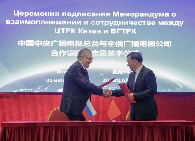 雙方簽署《中國中央廣播電視總臺與全俄廣播電視公司合作諒解備忘錄》