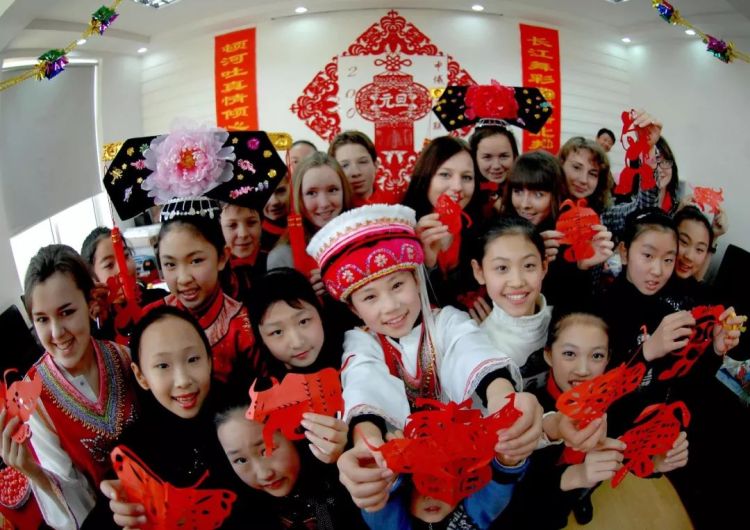 ↑遼寧沈陽(yáng),中俄學(xué)生在“莫斯科學(xué)生體驗(yàn)中國(guó)冬令營(yíng)”活動(dòng)上展示自己的剪紙作品。(2008年12月30日,張文魁)