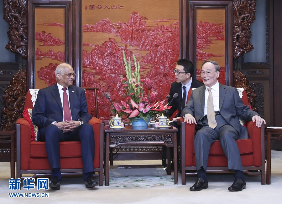 新華社北京6月19日電(記者孫奕)國(guó)家副主席王岐山19日在中南海紫光閣會(huì)見(jiàn)埃及議長(zhǎng)阿里。