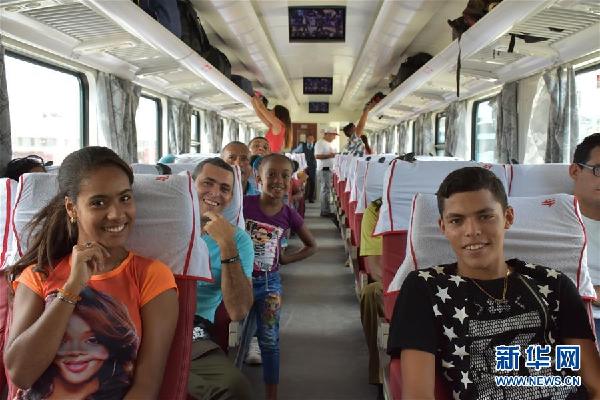 7月13日,在古巴首都哈瓦那,乘客們坐在一列由中國設(shè)計并生產(chǎn)的鐵路客車組成的列車上。新華社記者 朱婉君 攝