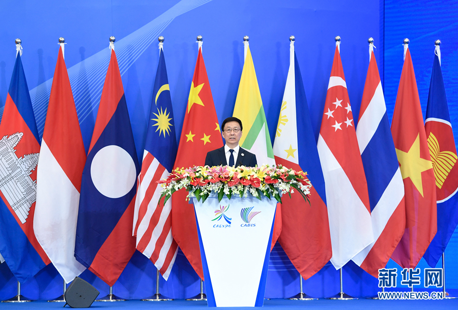 9月21日,第十六屆中國-東盟博覽會和中國-東盟商務與投資峰會在廣西南寧開幕。中共中央政治局常委、國務院副總理韓正出席開幕式并發(fā)表主旨演講。 新華社記者 申宏 攝
