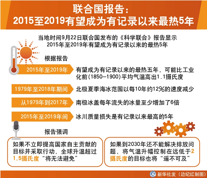 新華社聯合國9月22日電(記者王建剛)聯合國22日發(fā)布的一份報告顯示,2015年至2019年有望成為有記錄以來的最熱5年。