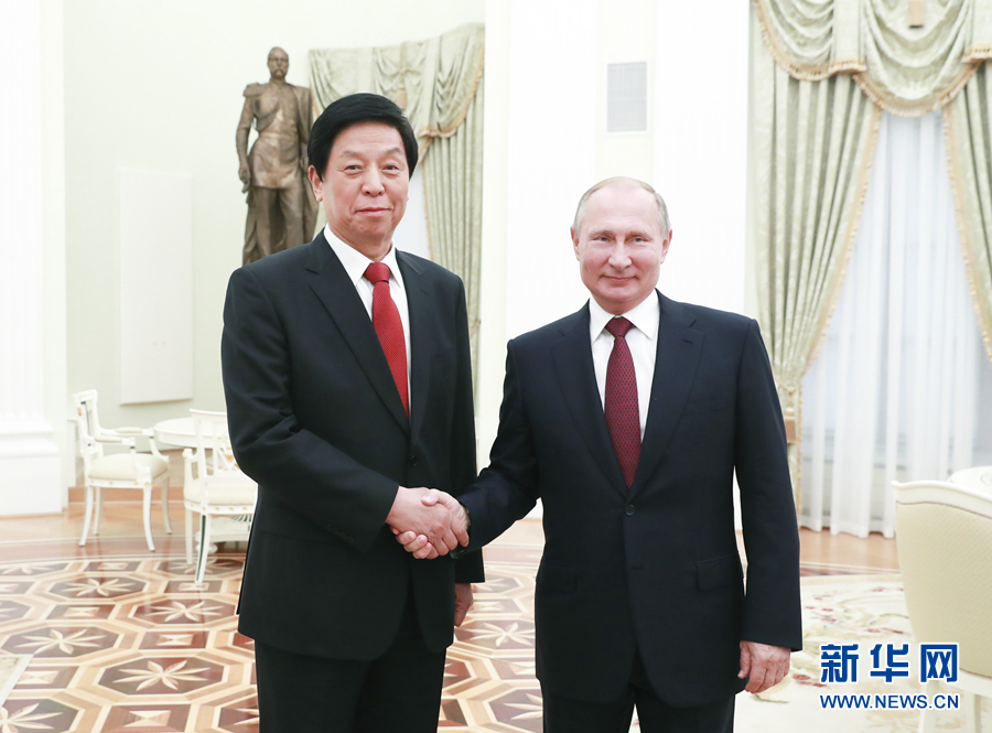 會見普京時(shí),栗戰(zhàn)書首先轉(zhuǎn)達(dá)了習(xí)近平主席的親切問候。栗戰(zhàn)書說,在習(xí)近平主席和總統(tǒng)先生的戰(zhàn)略引領(lǐng)和推動下,中俄關(guān)系達(dá)到前所未有的高度,邁入更高水平、更大發(fā)展的新時(shí)代。在當(dāng)前國際形勢下,中俄應(yīng)更加堅(jiān)定相互支持,共筑兩國戰(zhàn)略依托和安全屏障,推動構(gòu)建新型國際關(guān)系和人類命運(yùn)共同體。要在兩國元首的戰(zhàn)略引領(lǐng)下,把政治互信和戰(zhàn)略協(xié)作推向新高度,把經(jīng)貿(mào)合作推向新水平,推動中俄新時(shí)代全面戰(zhàn)略協(xié)作伙伴關(guān)系不斷向前發(fā)展。普京請栗戰(zhàn)書轉(zhuǎn)達(dá)對習(xí)近平主席的良好祝愿。他說,俄中關(guān)系是當(dāng)今世界大國關(guān)系的典范。俄中新時(shí)代全面戰(zhàn)略協(xié)作伙伴關(guān)系建立在遵守國際法基礎(chǔ)上,符合兩國及兩國人民利益。當(dāng)前兩國各領(lǐng)域合作都向著既定目標(biāo)穩(wěn)步推進(jìn)。要在現(xiàn)有基礎(chǔ)上,深化全面合作,把兩國關(guān)系發(fā)展得更好。