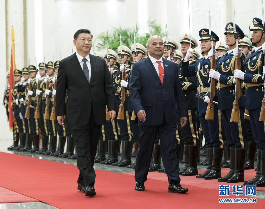 12月13日,國家主席習近平在北京人民大會堂同密克羅尼西亞聯(lián)邦總統(tǒng)帕努埃洛會談。這是會談前,習近平在人民大會堂北大廳為帕努埃洛舉行歡迎儀式。 新華社記者 王曄 攝