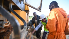 1月20日,在尼日利亞拉各斯,消防人員在輸油管道爆炸現(xiàn)場(chǎng)工作。? 新華社發(fā)(艾瑪·伊曼紐爾攝)