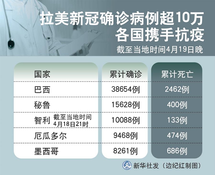 新華社圣保羅4月19日電? 綜述:拉美新冠確診病例超10萬 各國(guó)攜手抗疫