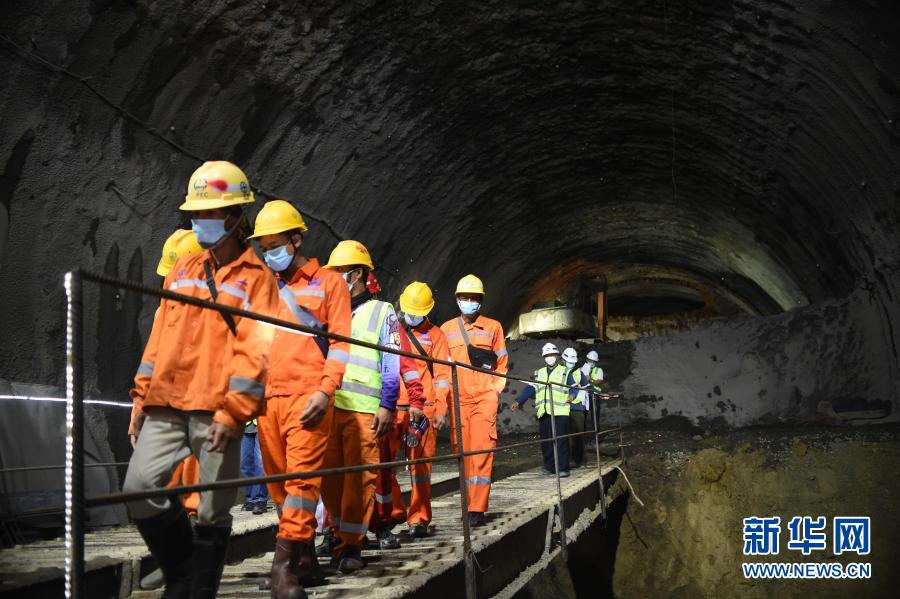 11月15日,施工人員走在印度尼西亞西爪哇省的雅萬(wàn)高鐵7號(hào)隧道內(nèi)。新華社發(fā)(祖卡南 攝)