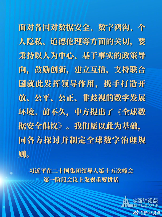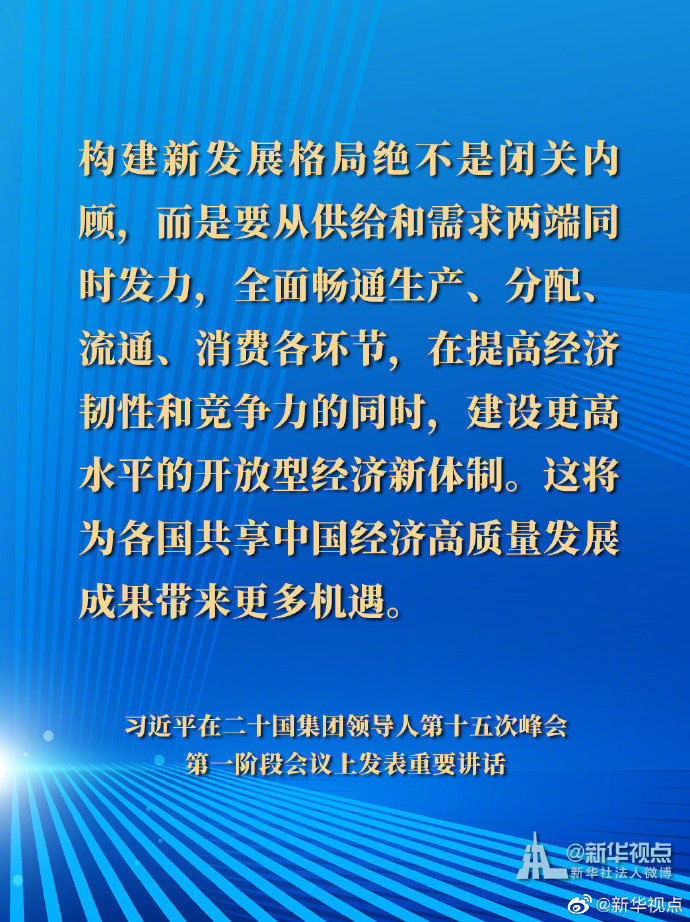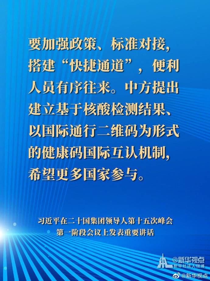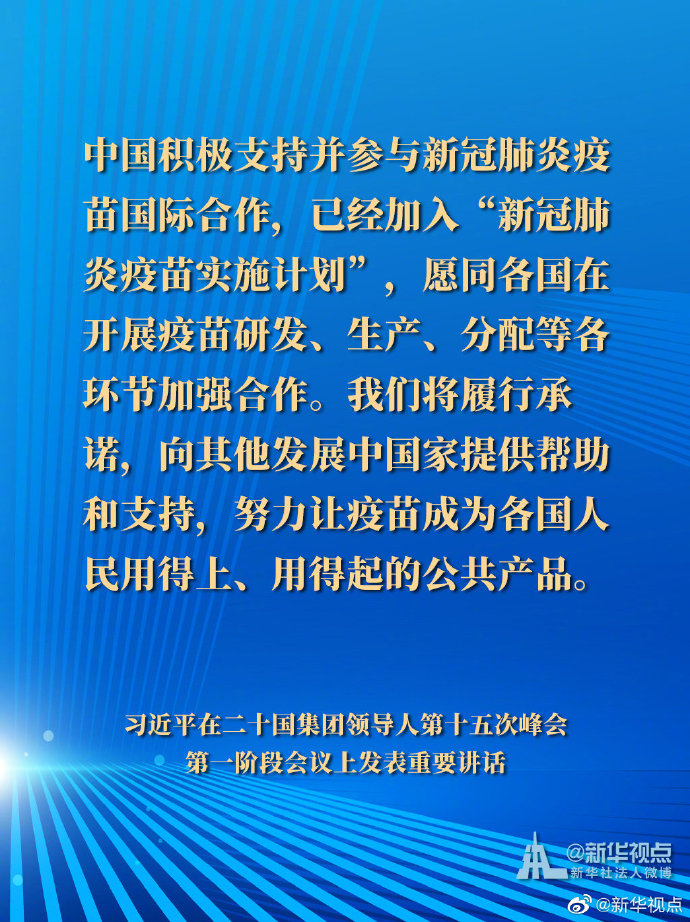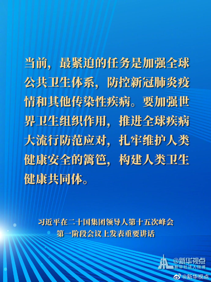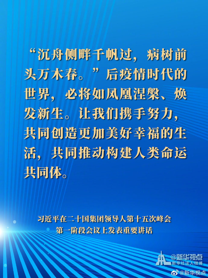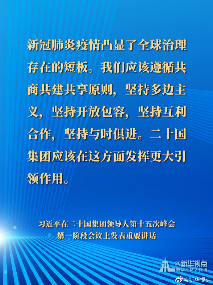 國家主席習近平21日晚在北京以視頻方式出席二十國集團領導人第十五次峰會第一階段會議并發(fā)表重要講話。以下是講話要點。