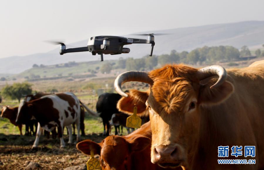 這是11月23日在戈蘭高地拍攝的正在牧牛的無人機(jī)。