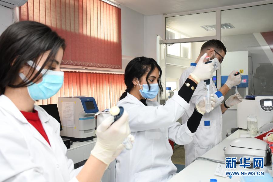 11月25日,在摩洛哥拉巴特,醫(yī)務(wù)人員在實(shí)驗(yàn)室里工作。新華社發(fā)(查迪攝)