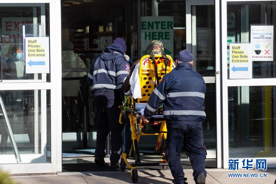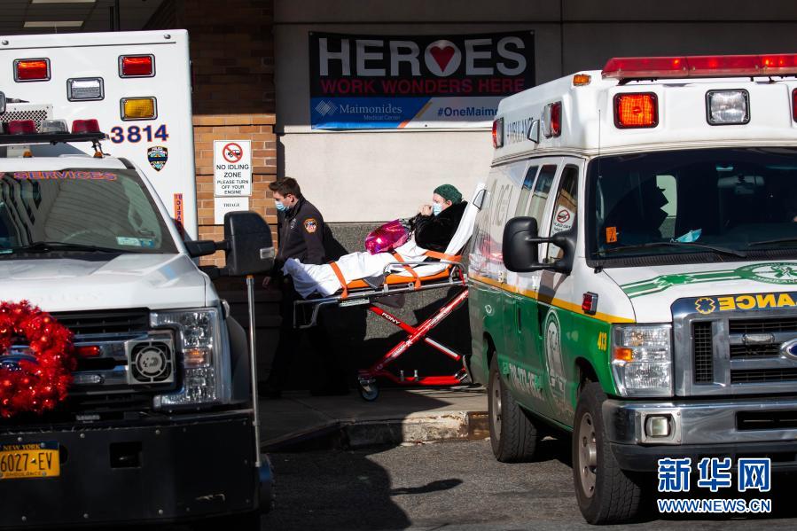 12月3日,在美國紐約,工作人員運(yùn)送一名患者。新華社發(fā)(郭克 攝)