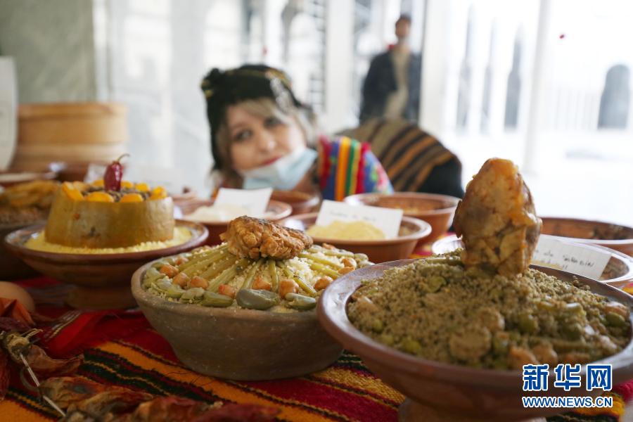 這是12月17日在阿爾及利亞首都阿爾及爾一個文化活動上拍攝的“古斯古斯”。