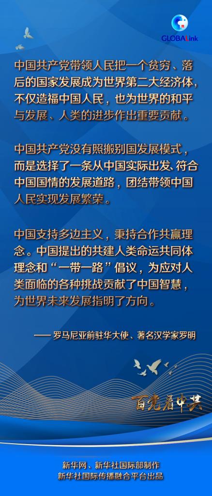 羅明認為,成立一百年來,中國共產(chǎn)黨擔當使命,踐行承諾,贏得人民信任,帶領(lǐng)中國取得偉大成就。
